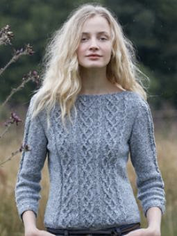 This cable sweater with three quarter length sleeves uses Rowan Revive and was the members exclusive pattern for May 2010.