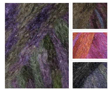 Amore Shimmer is Rowan's Kidsilk Haze in a multi strand and chainette contruction, giving all the luxury of Kidsilk Haze and an extra sparkle. Ideal for accessories and small projects