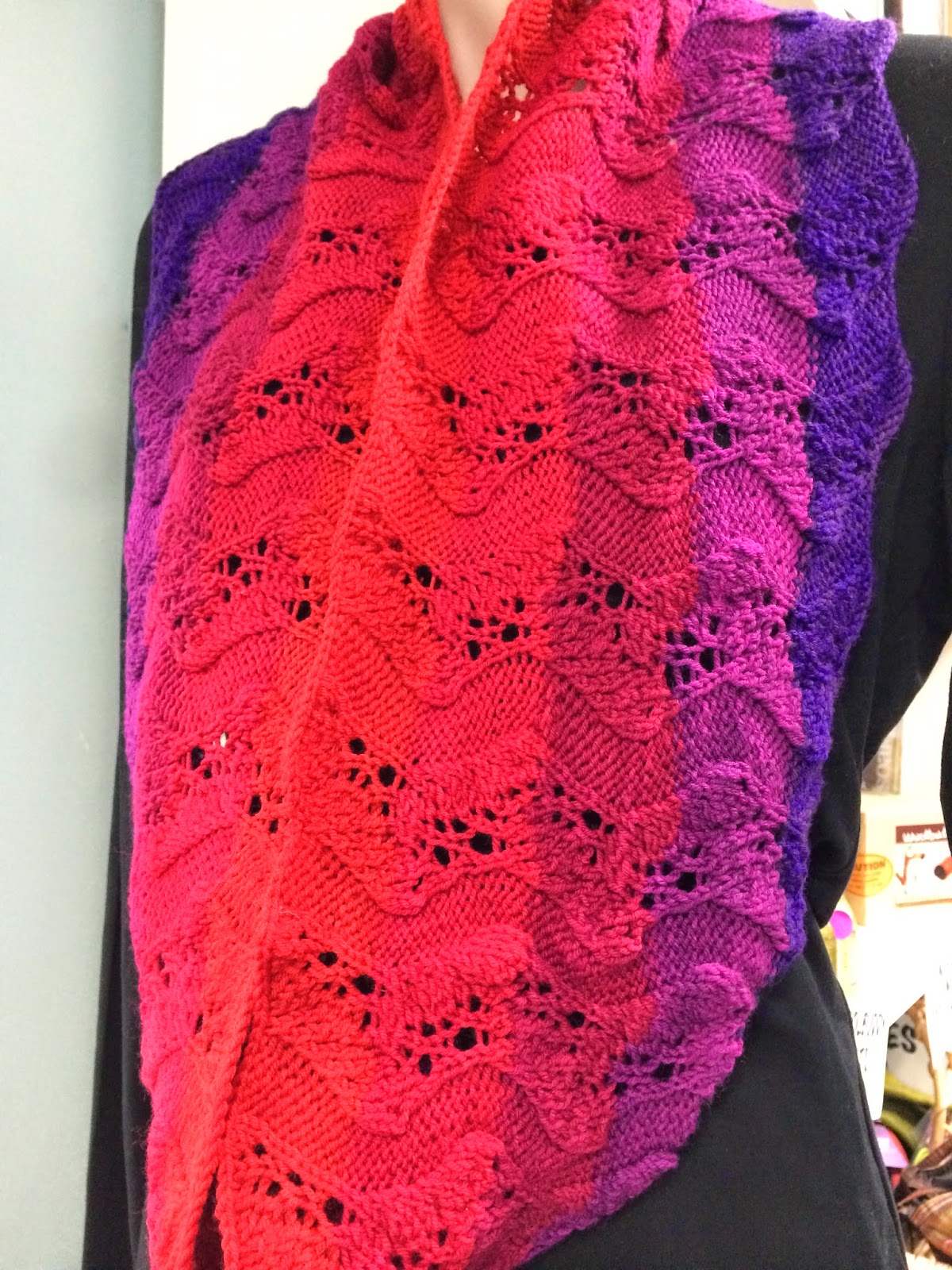There is another Auburn Wave to show. This is Kim's - knit in Freia Fibers Ombre Fingering. We have quite a bit of the yarn in the store and more will be coming later this month.