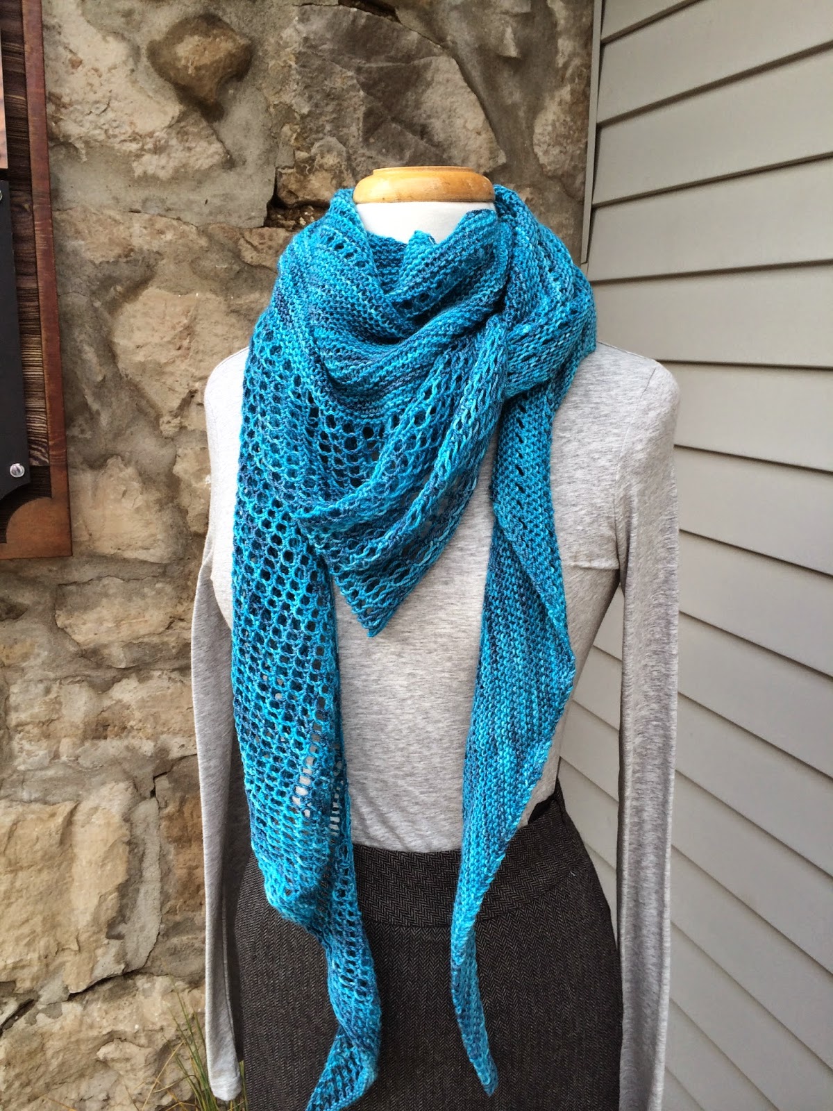 We've shown many Auburn Waves. This scarf/shawl is awesome. There are so many ways to wear it and you can make it as big or as small as you want. There are many, many, many yarn options. I haven't seen one yet that I haven't liked. My third one is almost to the lace section and there will be another one started sometime soon. I have 2 balls of Freia Fingering hiding in my bedroom :)