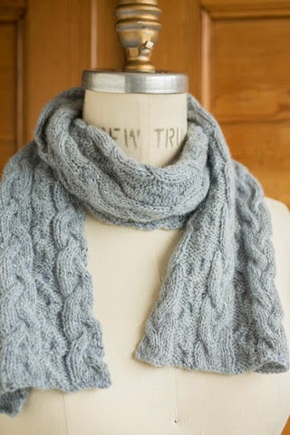 The scarf features wide columns of stockinette and reverse stockinette, which gain a softly braided texture by alternating the direction of the cable twist. Keeping the design simple and symmetrical means that the rows are easy to follow, whether you're reading the text or following the chart.The scarf is knit in 2-3 balls of Rowan Felted Tweed. We have many, many colours in stock. It is $12.50 a ball - under $40 for a great scarf. You can start on gifts for next year.
