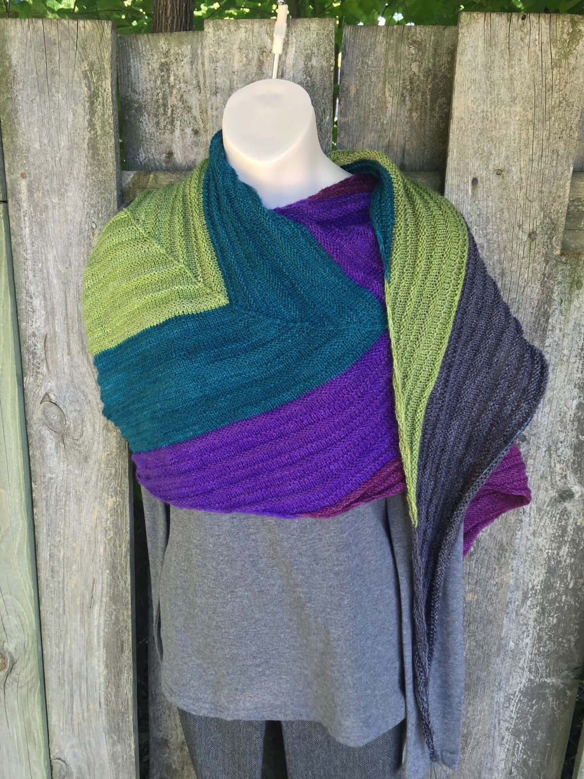 The first is from a Frabjous Fibers Cheshire Cat mini skein pack. I fudged the finish of it before the Knitters' Frolic (because I was trying to finish it the night before the show). It has bothered me since so I took back 20 rows this week and am finishing it properly.