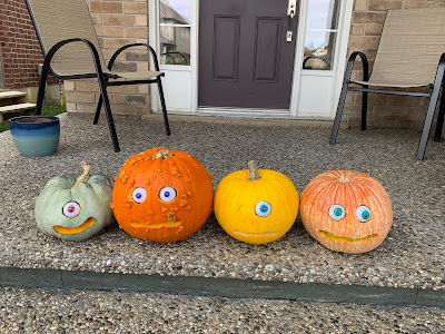Our pumpkins are ready. We are setting up a table at the end of the driveway where we will lay out goodie bags for the kids. Dad has some construction lights (which will be decorated with caution table) because he thinks the end of driveway is dark. He doesn’t want kids tripping. Dad and Beth are dressing up like construction workers and I will be in the house with the dogs. There could be some knitting time.