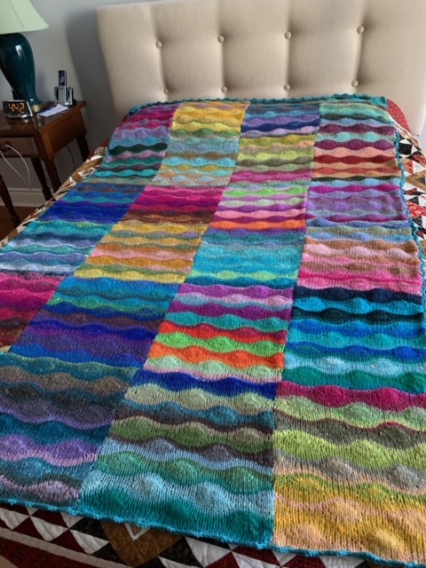 I went back to my Party of Five kits and Ambah O’Brien’s Adventurous Wrap. Garter stitch was an easy thing to knit. I am going to do the first triangle in this kit and the second triangle will be my other kit. As I am getting to the end of my skein I am fading in the next colour. One fade could be ten rows. One fade could be four rows. It just depends on how much yarn I left. If my triangles aren’t big enough (which I suspect is going to happen) I am going to use a third kit to do a few rows on the end of each triangle. That is a problem for the future.