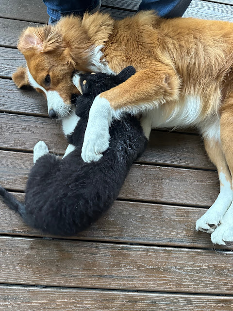 This is the Churchmouse Library Vest (pattern purchased on Ravelry) that we knit with Arranmore Light along with one of my Inclination Cowls knit with Dyed in the Wool Rosy Maple and Salty Dog.