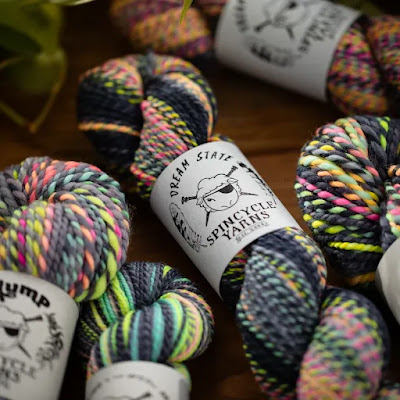 Malabrigo Rios. Rios won’t stripe like Dream State but you will see colour changes and I think that would look great in the sweater.